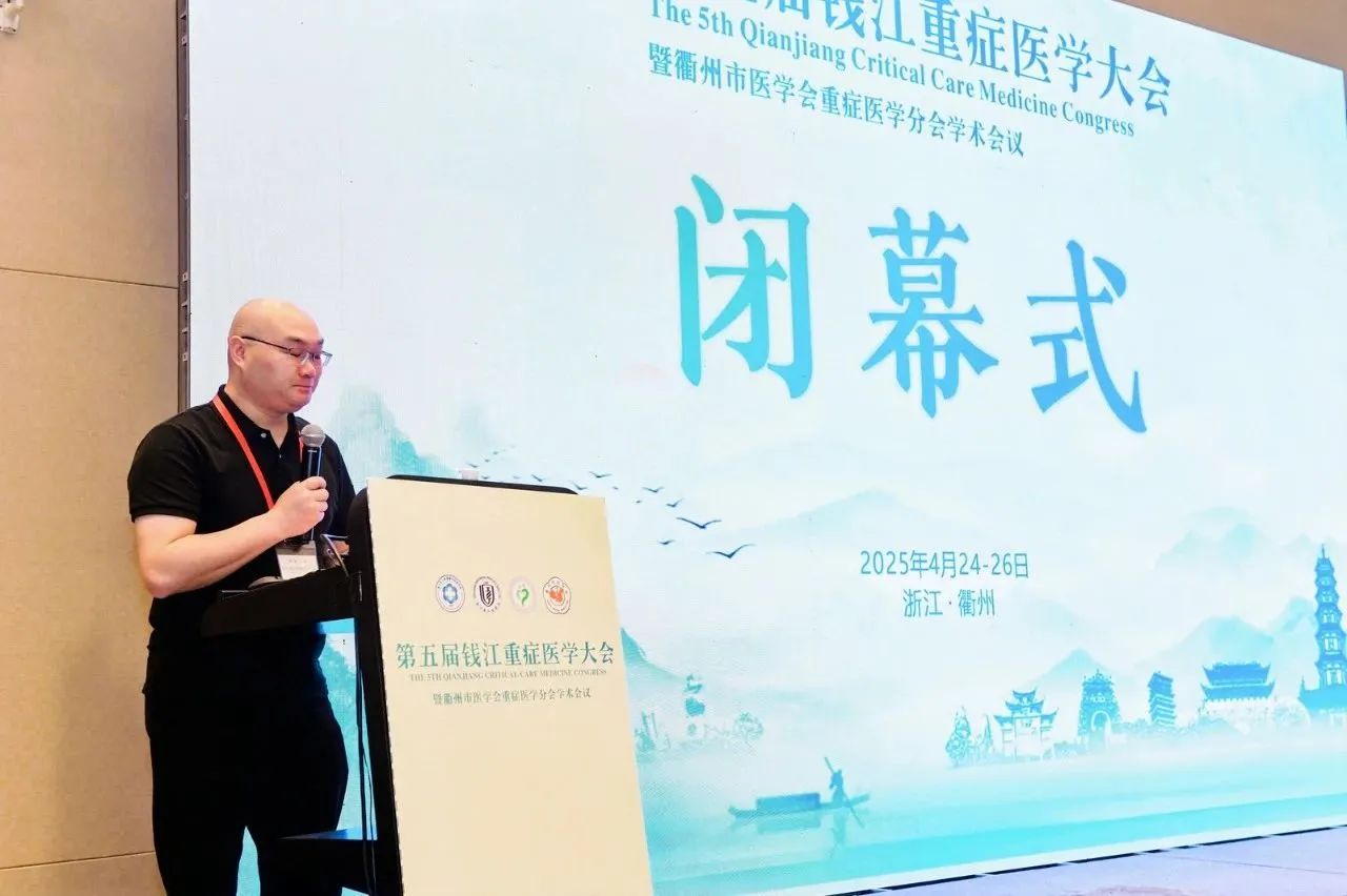 4月26日,会议完成各项议程,由浙江省人民医院孙仁华教授主持本次闭幕式,衢州市人民医院罗建教授发表闭幕辞,并宣布“第五届钱江重症医学大会”圆满闭幕。